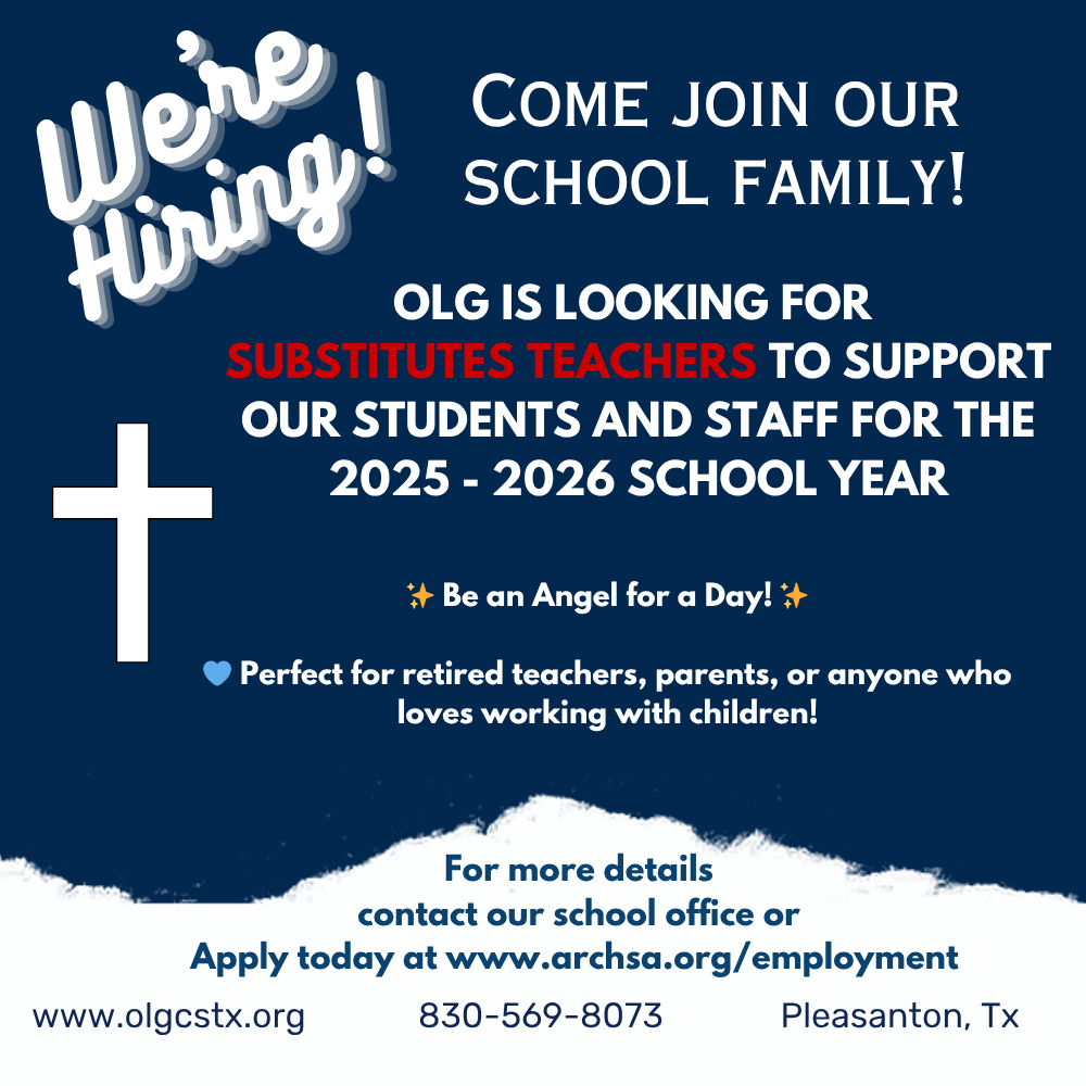 Our Lady of Grace Catholic School always accepts applications for qualified faculty who believe in Catholic school education and want to make a difference in a child's life. At Our Lady of Grace, we believe in creating a culture of discipline, family, service and spirit.